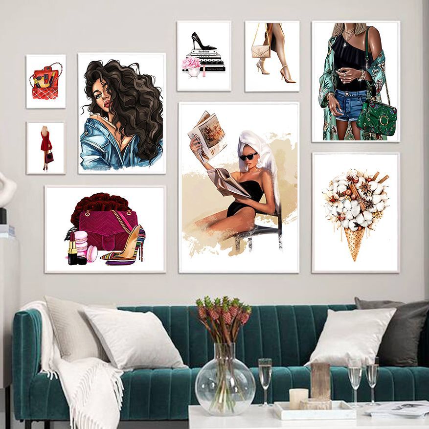 Schoolbag High Heels Lipstick Art Canvas Painting Nordic Posters And Decoration Wall Painting