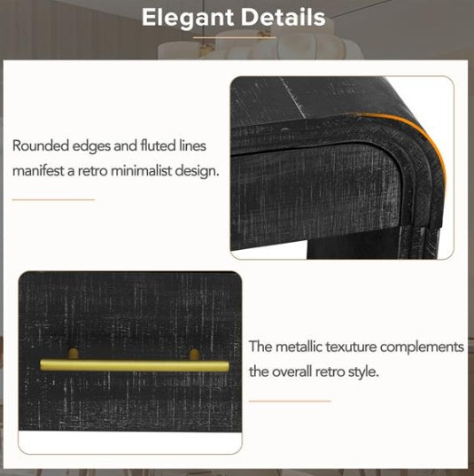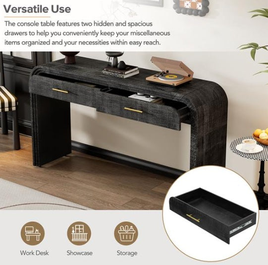 Unique Vintage Silhouette Console Table With An Open Design With Two Drawers At The Top For Entrance, Dining Room, Living Room - Antique Black